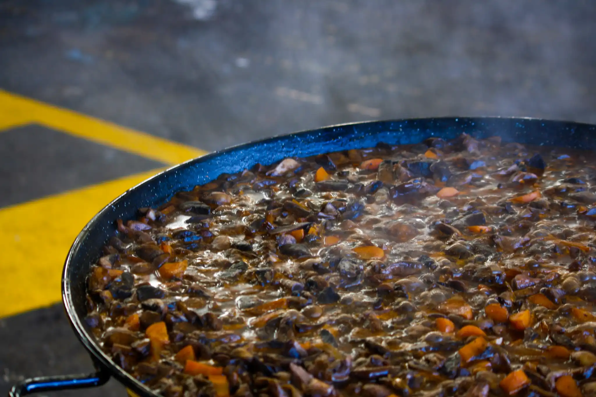 Nous cuisinons votre repas devant vos convives dans de grandes poêles. Vous venez vous servir une fois notre préparation finie.